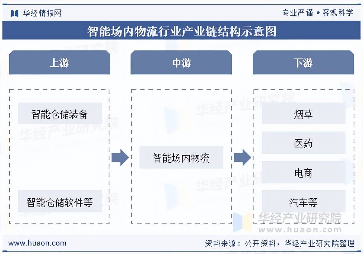 智能场内物流产业链上游提供设备和软件支持,中游进行系统集成与方案提供,下游为应用领域。各环节相互协作,上游技术进步推动中游发展,中游根据下游需求提供解决方案,下游行业扩张则创造更多市场需求,共同促进智能场内物流行业向智能化、高效化迈进。