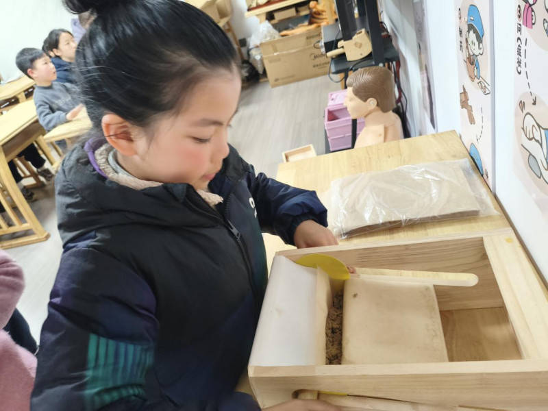 理论学习之后,活动进入动手实践环节。在中医师的指导下,孩子们首先体验了传统碾艾绒工艺。将干燥的艾叶放入石臼,手持杵棒反复捣碾,看着粗糙的艾叶渐渐变成绵软的艾绒,孩子们既新奇又兴奋。之后再在老师的指导下,将艾绒均匀铺展在桑皮纸上,小心翼翼卷成紧实圆润的艾条。虽然动作略显稚嫩,但每个孩子都全神贯注,力求做出完美的作品。“原来艾条是这样做出来的!”“艾叶的味道好清香啊!”看着自己亲手制作的艾条,孩子们成就感满满,纷纷表示要带回家给长辈试用。