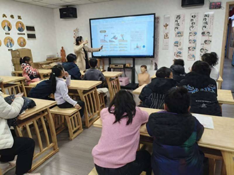 随后,中医师通过人体穴位模型,生动形象地介绍了艾灸常用穴位,如足三里、关元、神阙等保健要穴,以及大椎、肺俞等适合春季防感冒的穴位。孩子们围在模型周围,一边认真听讲,一边在自己身上寻找对应位置,现场学习氛围浓厚。