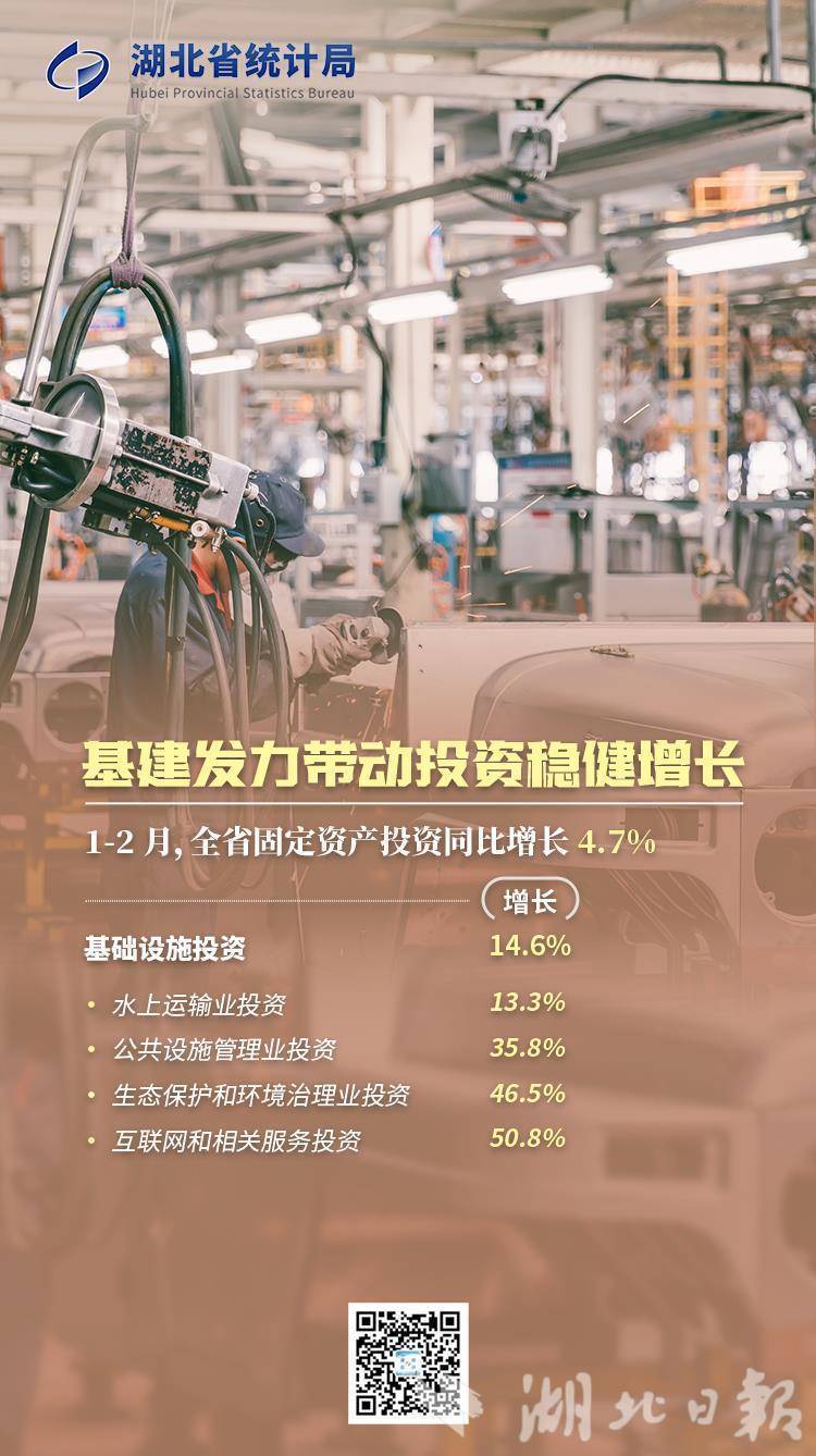 投资结构持续优化释放积极信号。1至2月,全省固定资产投资同比增长4.7%,高于全国2.9个百分点。其中,基础设施投资增长14.6%。互联网及相关服务投资、生态保护和环境治理业投资、公共设施管理业投资均实现30%以上的高速增长。