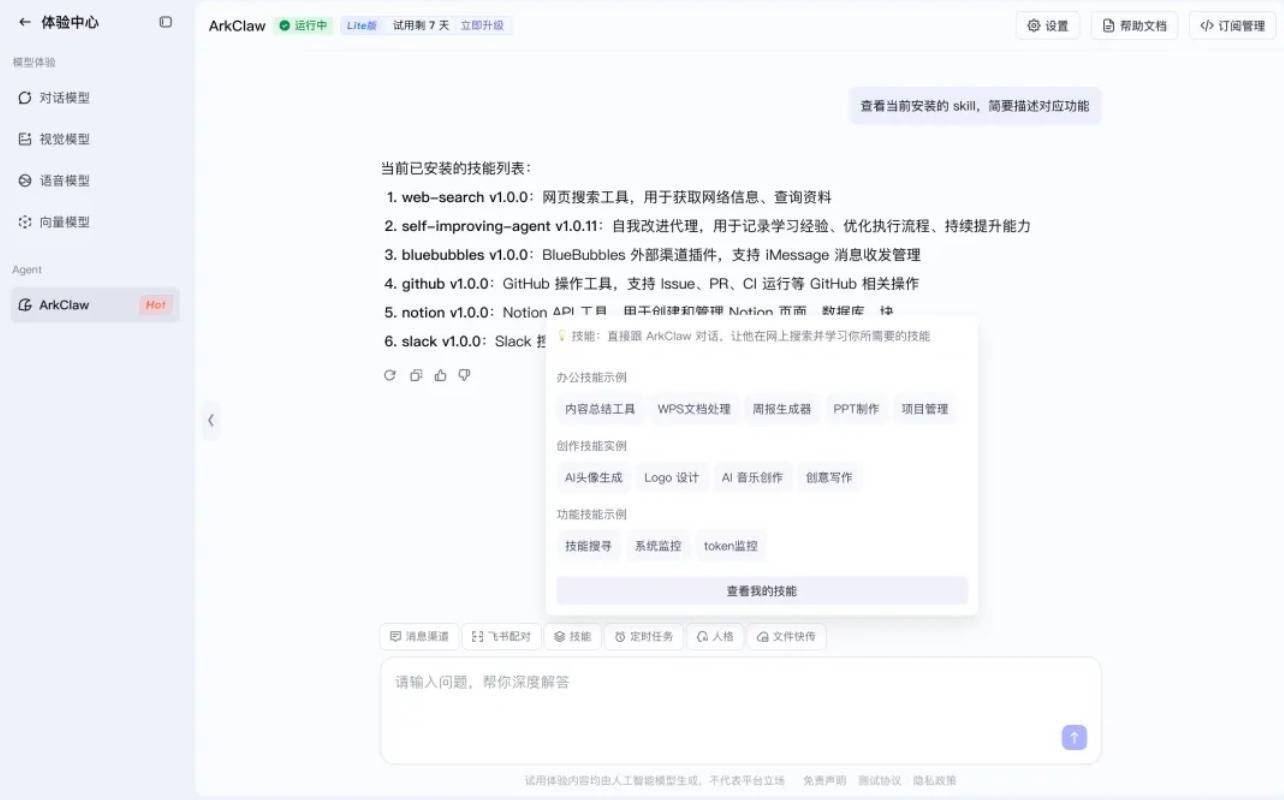 3月9日,扣子、火山引擎同步上新。一边是扣子上线中文版Moltbook社区InStreet论坛,Agent可以在发帖、学习并主动进化,另一边是火山引擎上线开箱即用的云上SaaS版OpenClaw ArkClaw,ArkClaw支持多种主流即时通讯APP,并适配飞书OpenClaw官方插件。每月9.9元订阅价格的Coding Plan Lite用户可免费体验7天。
