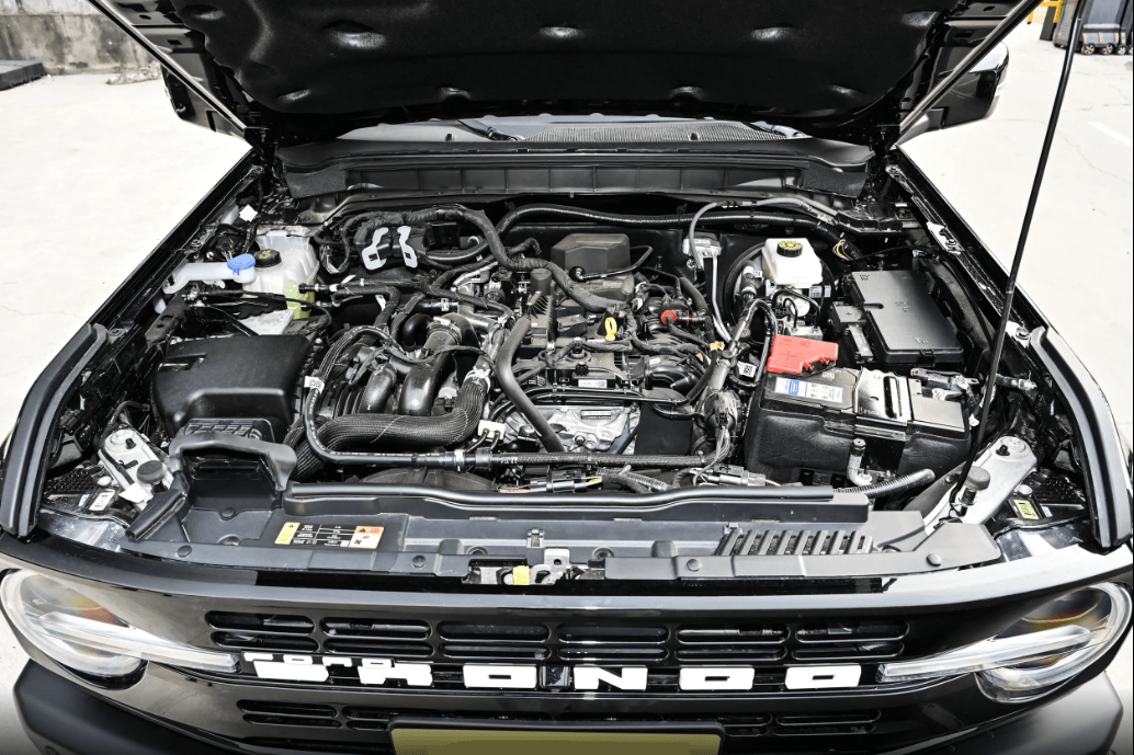 安全性方面,它用的是高强度承载式车身框架,关键部位还用了1500MPa硼钢加固,整车抗扭刚度直接提升 20%,抗冲击能力堪比小装甲车。我试驾时故意40km/h直接冲过一个大坑,车身几乎没什么形变,车门照样轻松开关,安全感拉满,简直就是个移动的堡垒。再说说它的散热,越野的时候太重要了。福特烈马直接借鉴了达喀尔赛车的散热设计,配上双电动风扇和大尺寸中冷器。我试驾那天气温快30℃,连续爬了半小时陡坡,水温一直稳在90℃左右,动力一点没衰减,低速高负载也稳如老狗,这散热是真的顶!
