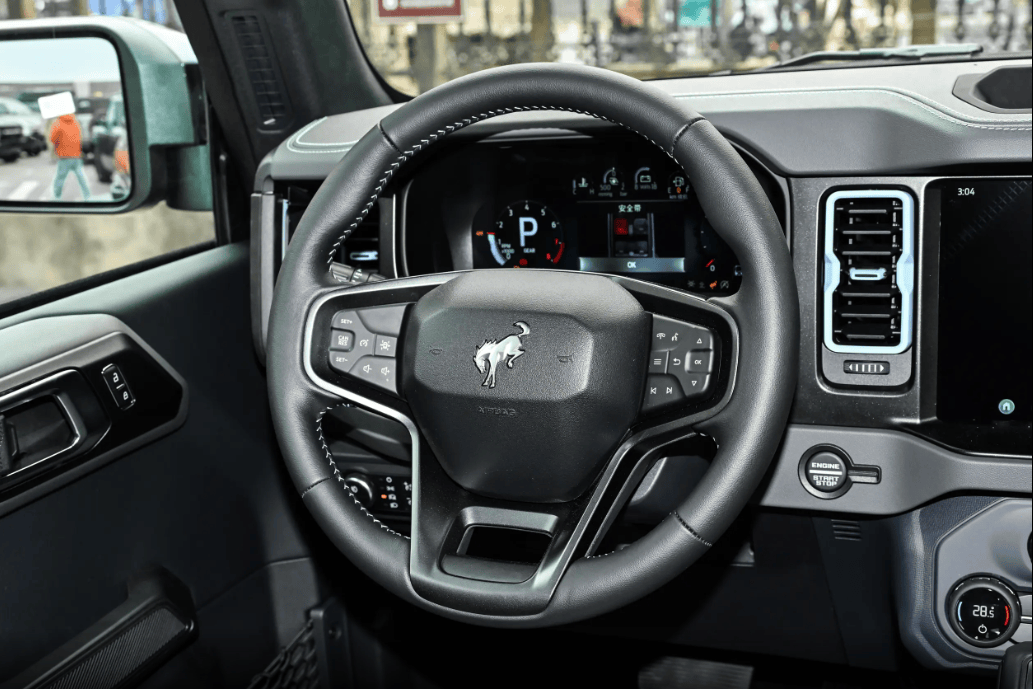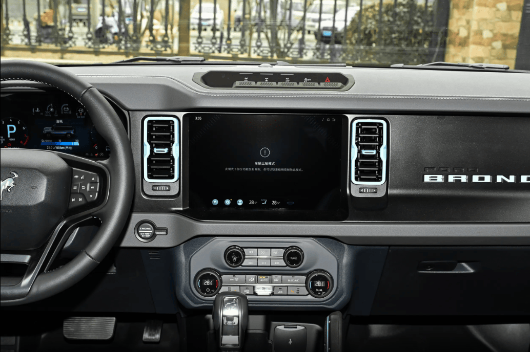 内饰设计方面,可以看出福特烈马的车内主打实用、好用、不花哨。配备了12英寸的嵌入式中控屏,搭载的是高通骁龙8155芯片,操作起来很流畅,不会出现卡顿的情况,平时导航、听歌都很方便。语音控制反应快,空调、导航、音乐说一声就能控制,开车时不用动手,更安全。导航能实时更新路况,避开拥堵,跑长途、越野都很实用。手机互联支持CarPlay、CarLife,苹果安卓都能无缝连接。辅助驾驶也很全:全速自适应巡航、车道保持、主动刹车、盲区监测全都有。市区堵车能自动跟车,跑高速更稳更安全,让这台硬派越野城市开也很舒服、很省心。