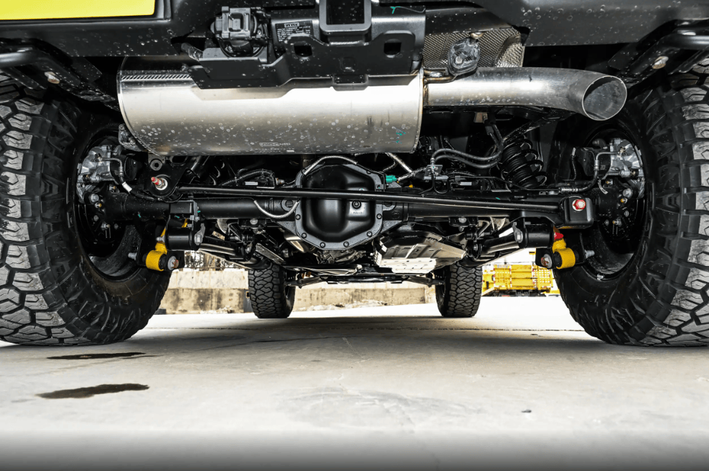 除了给力的动力,2026款福特烈马的越野硬实力更是实打实的。毕竟是传承福特六十多年越野基因的车型,拿过 34次巴哈1000冠军,达喀尔也成绩亮眼,绝对不是样子货。它用的是前双叉臂+后整体桥的经典硬派底盘,全系标配四驱,这套组合既能过滤掉日常细碎颠簸,保证舒适性,越野时又够稳、支撑性强,大起伏、烂路都很有底气。车身还是高强度承载式框架结构,刚性拉满,跑崎岖路段、应对复杂路况都更稳更安全。