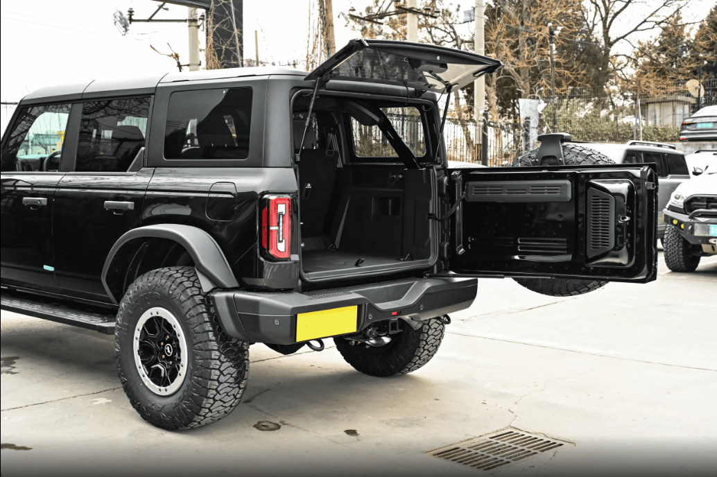 前后保险杠采用粗壮钢材打造,既能在越野时对车身起到保护作用,也进一步强化了硬派气场,下方的护板则能有效避免底盘被碎石、沟坎刮擦,让用户在应对复杂路况时更具信心,减少车辆损耗。再加上背负式备胎这个“小书包”,还有侧开式尾门,每一处设计都透着硬派越野的气质。