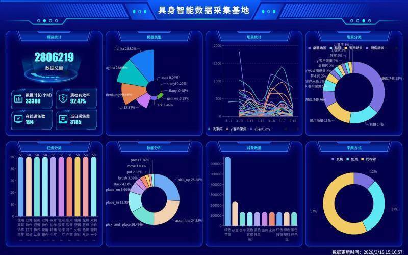 在人工智能从“感知智能”向“具身智能”跃迁的关键窗口期,高质量数据已成为驱动人形机器人产业发展的战略资源。3月20日,北青报记者从北京人形机器人创新中心(以下简称“北京人形”)获悉,北京人形具身智能机器人数据与训练基地一期(以下简称“数据基地”)自建成不到半年,已发展成为国内场景覆盖最齐全、机器人构型最丰富、数据产能及质量最高的专业化数据采集平台之一。